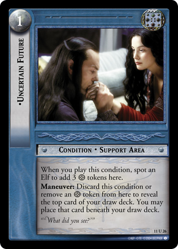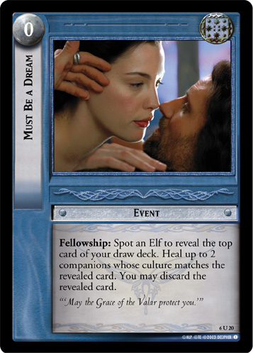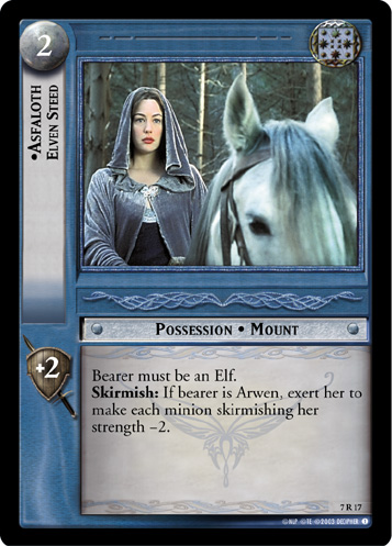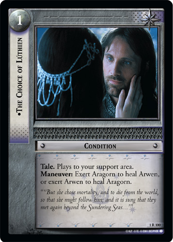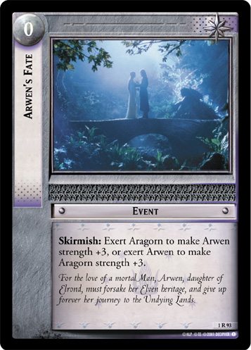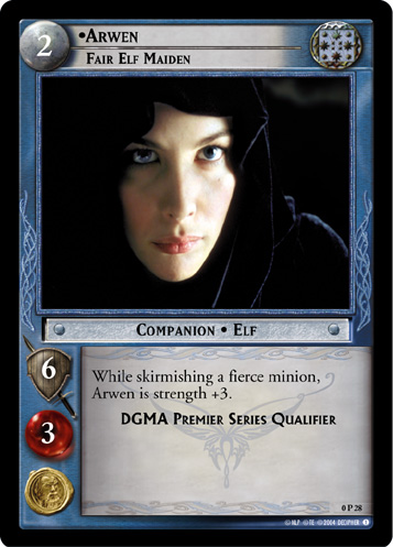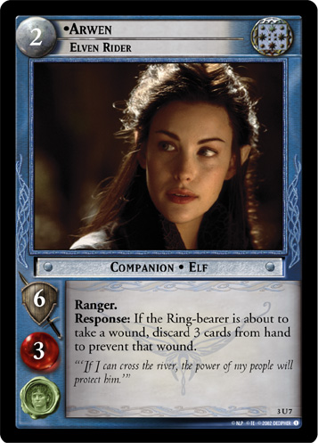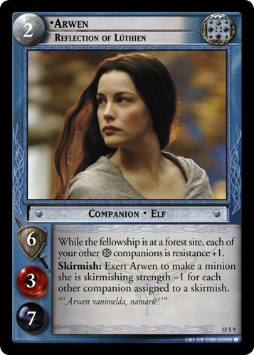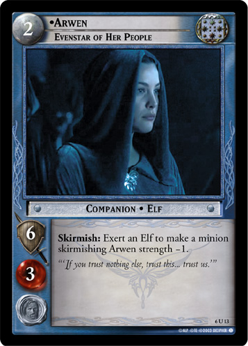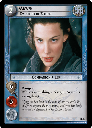 Various Arwen and Arwen-adjacent cards from Decipher's The Lord of the Rings Trading Card Game.